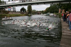 1500m de natation dans la Sarre comprenant deux boucles avec une sortie de l'eau,